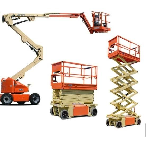 Plataforma elevadora remolcable, articulada y telescópica de 12 metros de altura de trabajo. Tres posibles fuentes de alimentación (CA 220V, 24V baterías o motor térmico). Versión estándar equipada con estabilizadores hidráulicos.